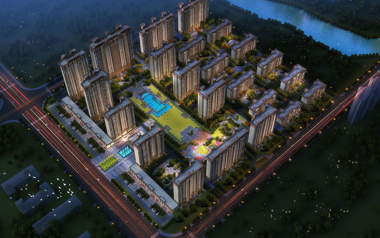 構圖如星空長河般的曲折蜿蜒,帶老人的客戶,可以駐足小憩,未來業主也可靜享林幽鳥語,林下太極健身,空靜舒朗,追求自然,回歸生活中的最初的本源形態。