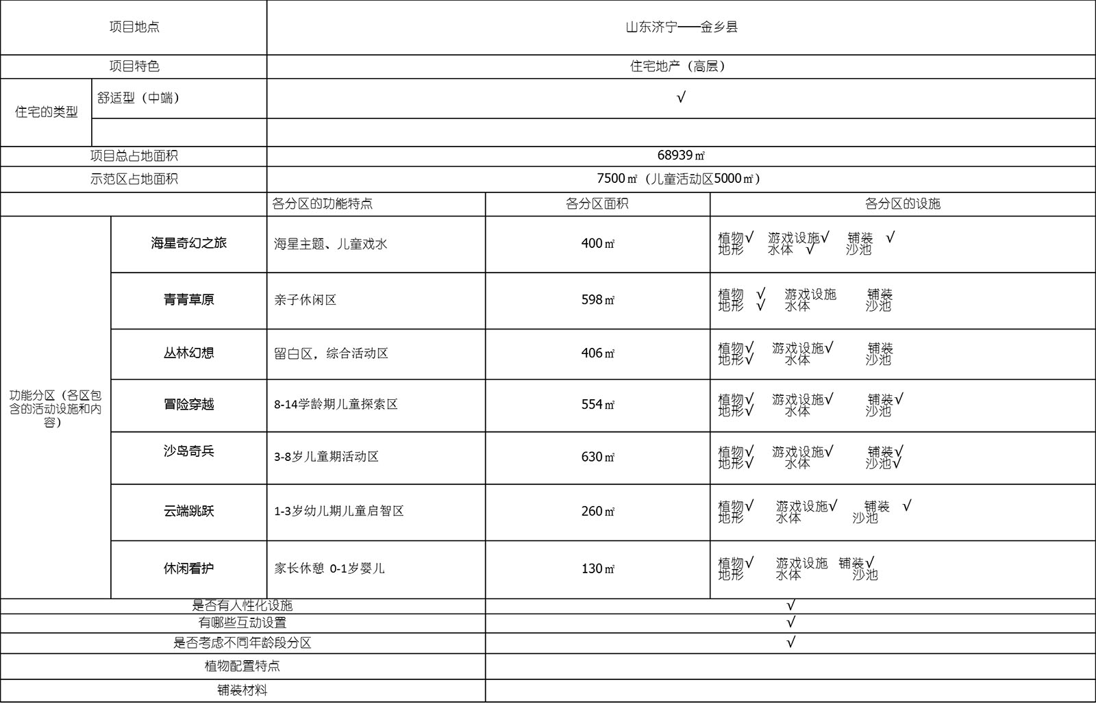 將兒童各功能區(qū)活動(dòng)條件等各項(xiàng)數(shù)據(jù)匯總,建立星空住宅項(xiàng)目開(kāi)發(fā)標(biāo)準(zhǔn)化、產(chǎn)品化體系。