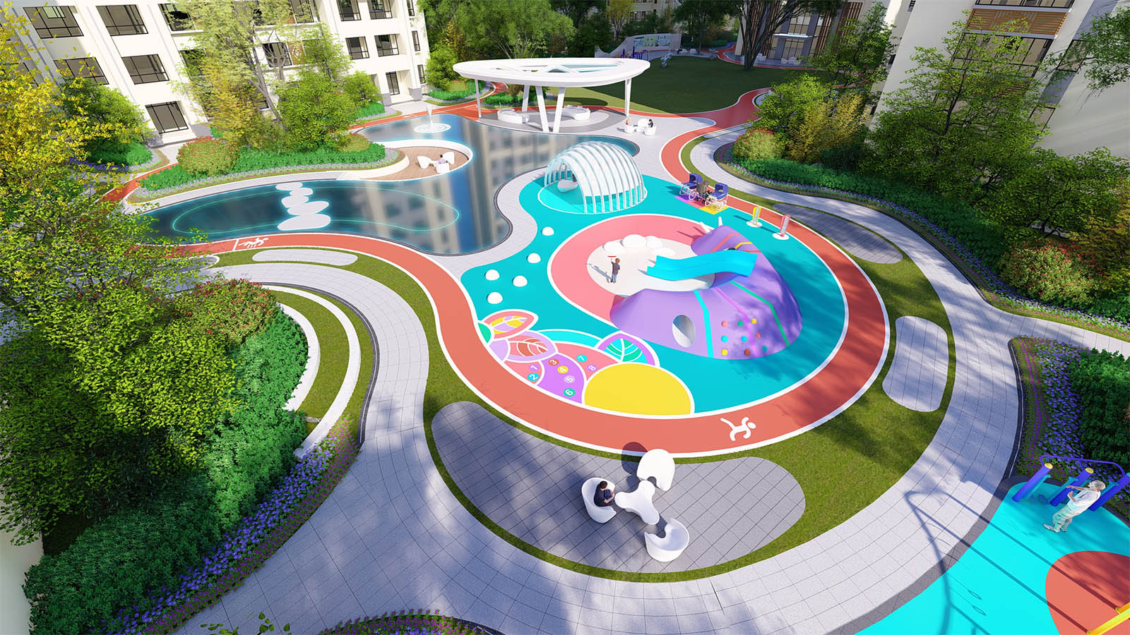 創(chuàng)造一個(gè)集參與、互動(dòng)、體驗(yàn)、娛樂、教育為一體的復(fù)合型兒童活動(dòng)區(qū),配適各年齡段兒童的成長(zhǎng)需求及感知體驗(yàn),