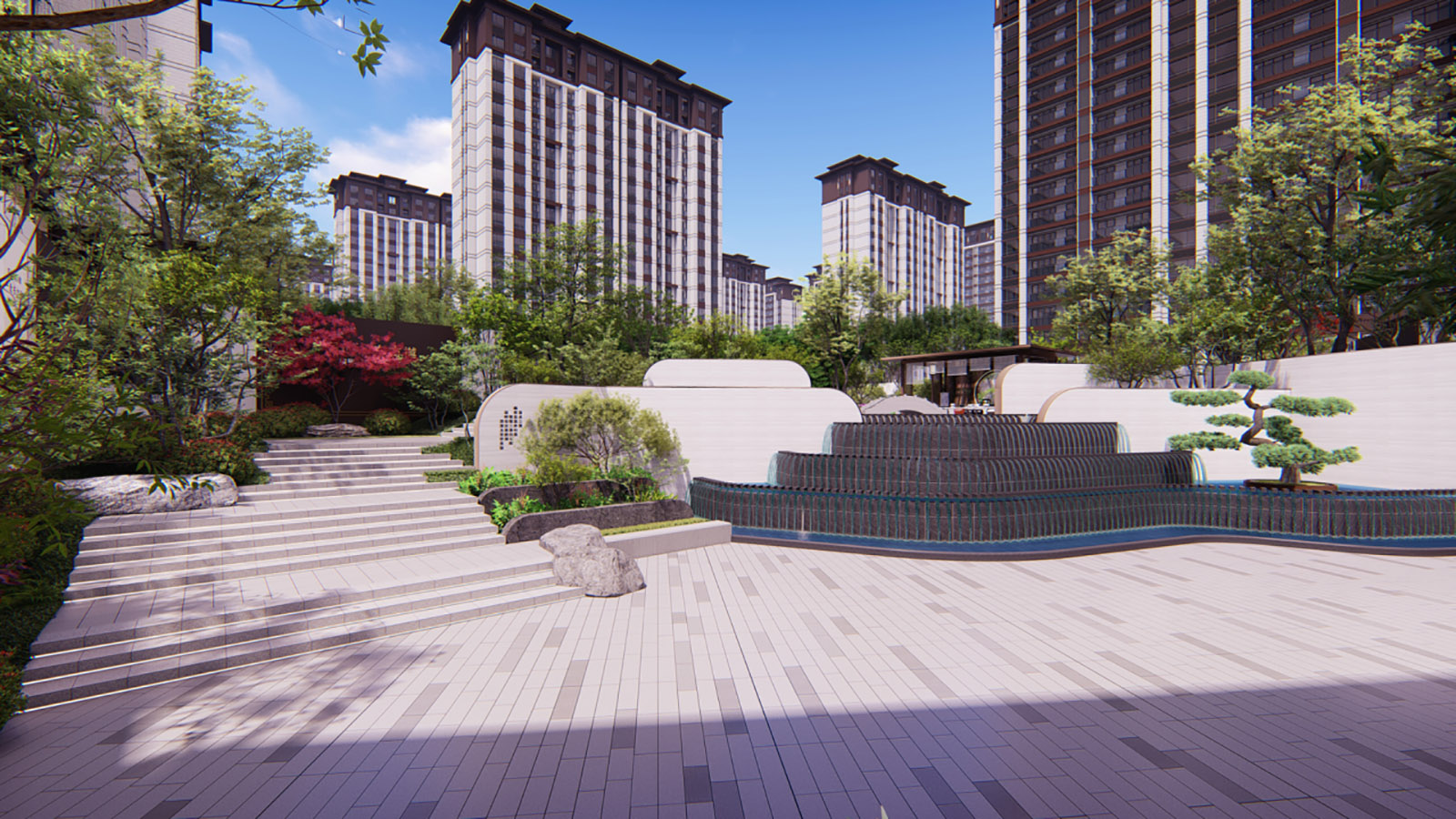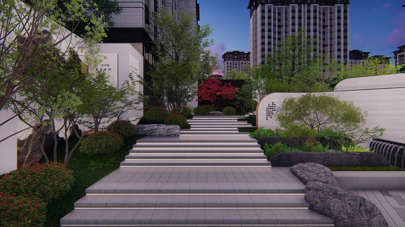 層層遞進(jìn)式的景觀空間,突出場(chǎng)地精神。 蓄勢(shì)、禮儀、休閑、靜雅、禪意、生活。