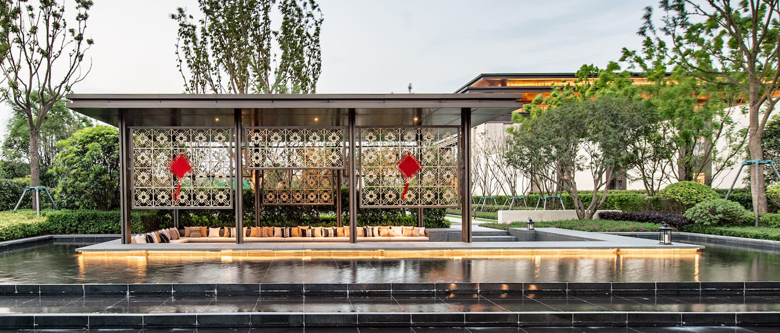 景觀設(shè)計(jì)以案名“璽瑯府”為立意展開設(shè)計(jì),打造王府、大宅的氣度,同時(shí)又融入及其細(xì)膩的生活設(shè)施,打造視覺享受與生活功能相融合的宜居生活區(qū)。