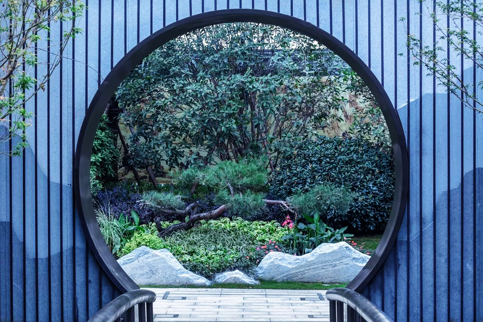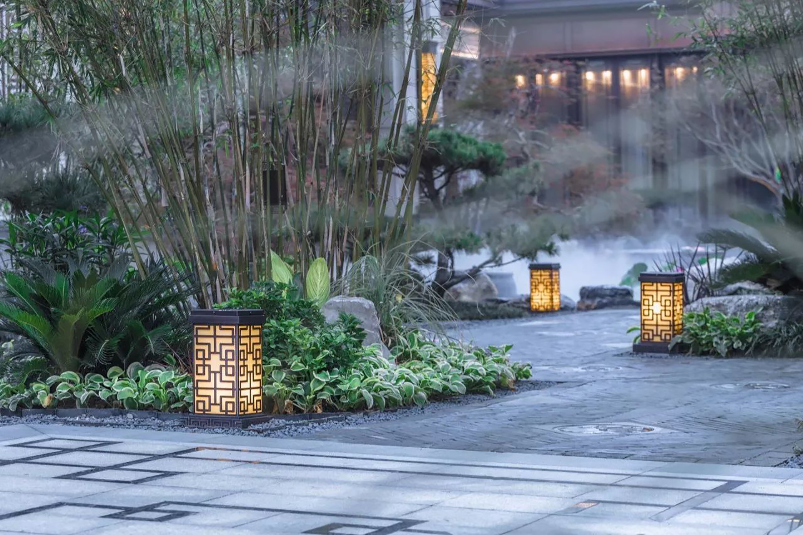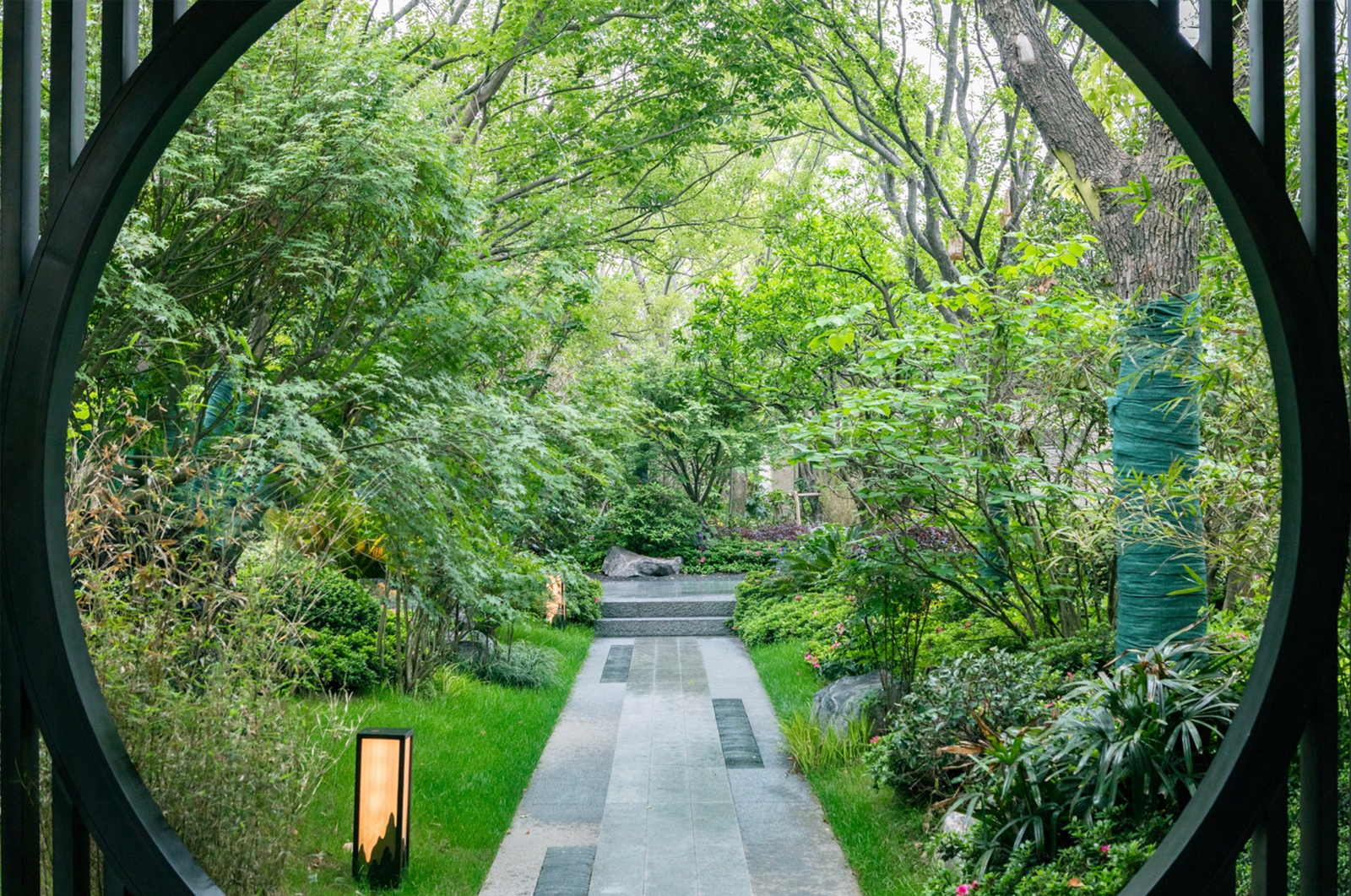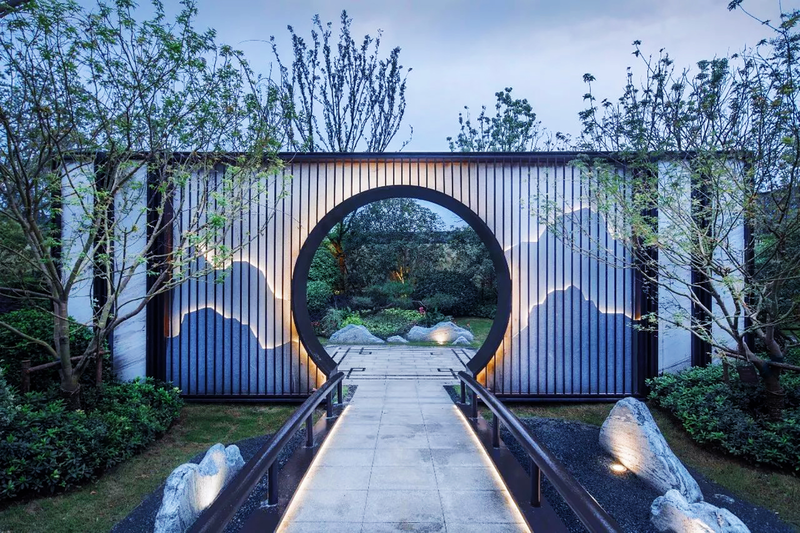整個展示區(qū)景觀采用三進禮敘,一進精制禮儀,禮儀迎賓,二進后場景觀迂回式設計,百轉千回之后,一席東方府邸從容呈現,三進無邊際泳池水景展開,空靈靜美,引導業(yè)主進入具有濃郁東方韻味的山水之境。